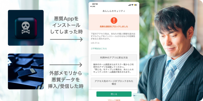 ※ すべてのセキュリティの脅威や、危険サイト・危険なWi-Fiの検出、迷惑電話の判定等を保証するものではありません。